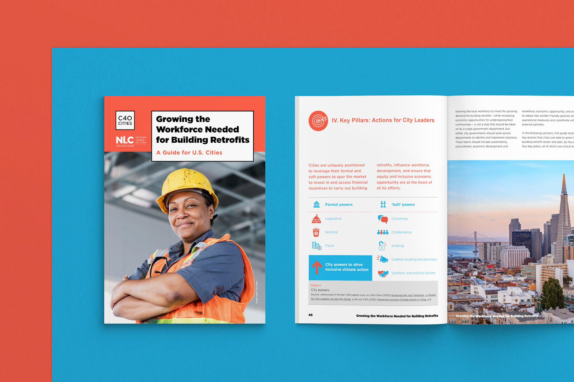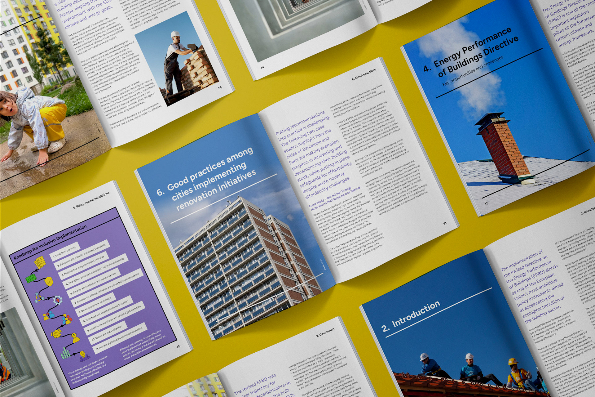 The typesetting and design of an agenda-setting new 60-page report on improving the energy performance of buildings and tackling the housing crisis in Europe, alongside an 80-page report showing how to grow the workforce needed to retrofit buildings in US cities.