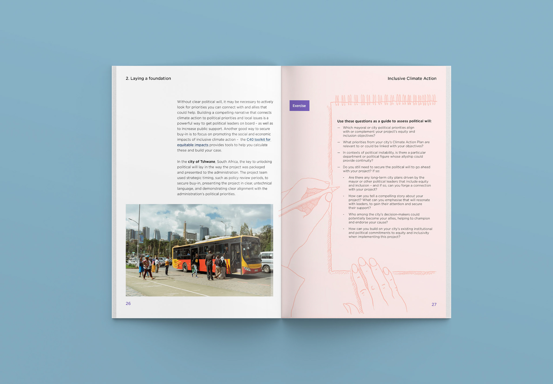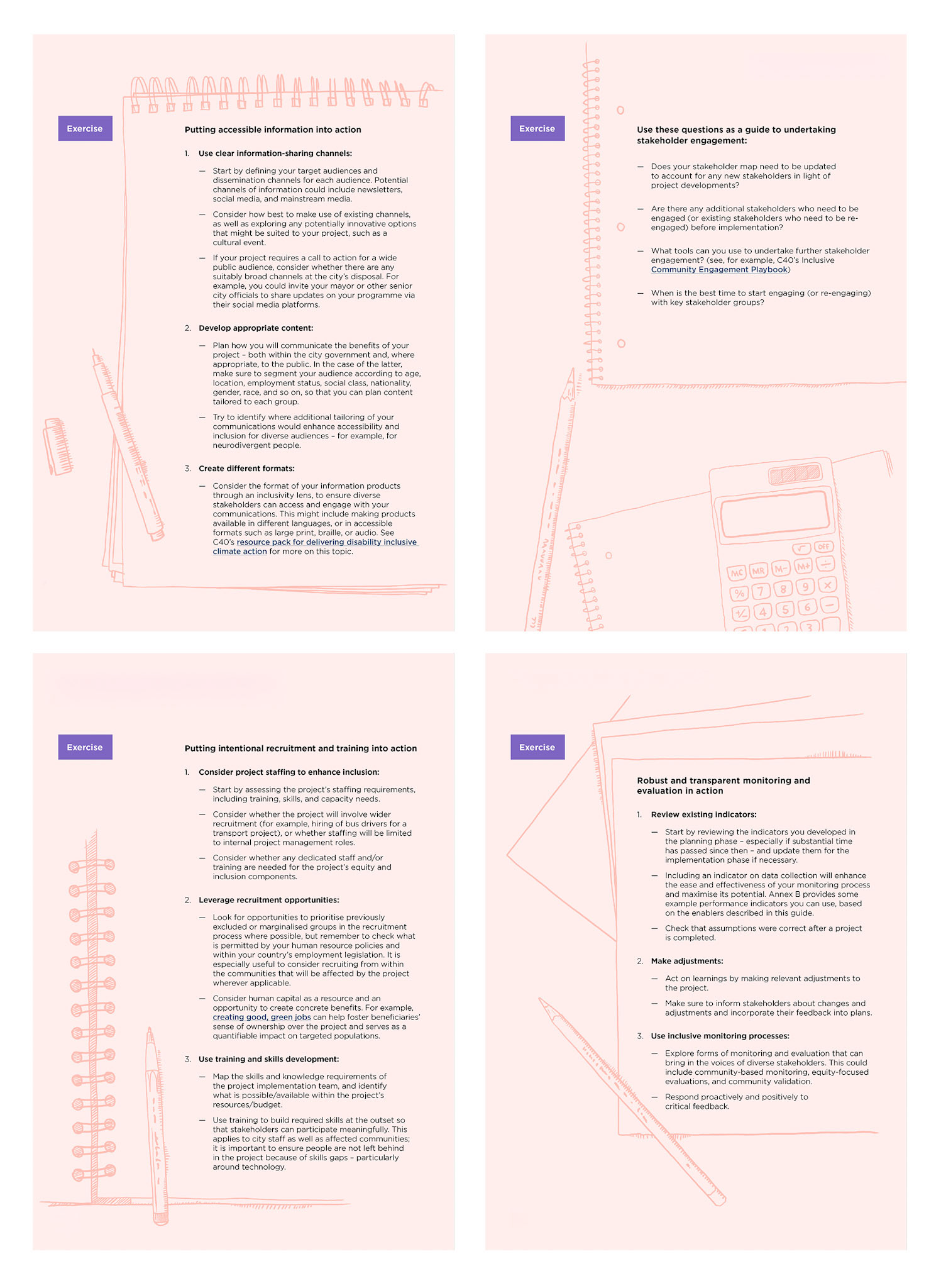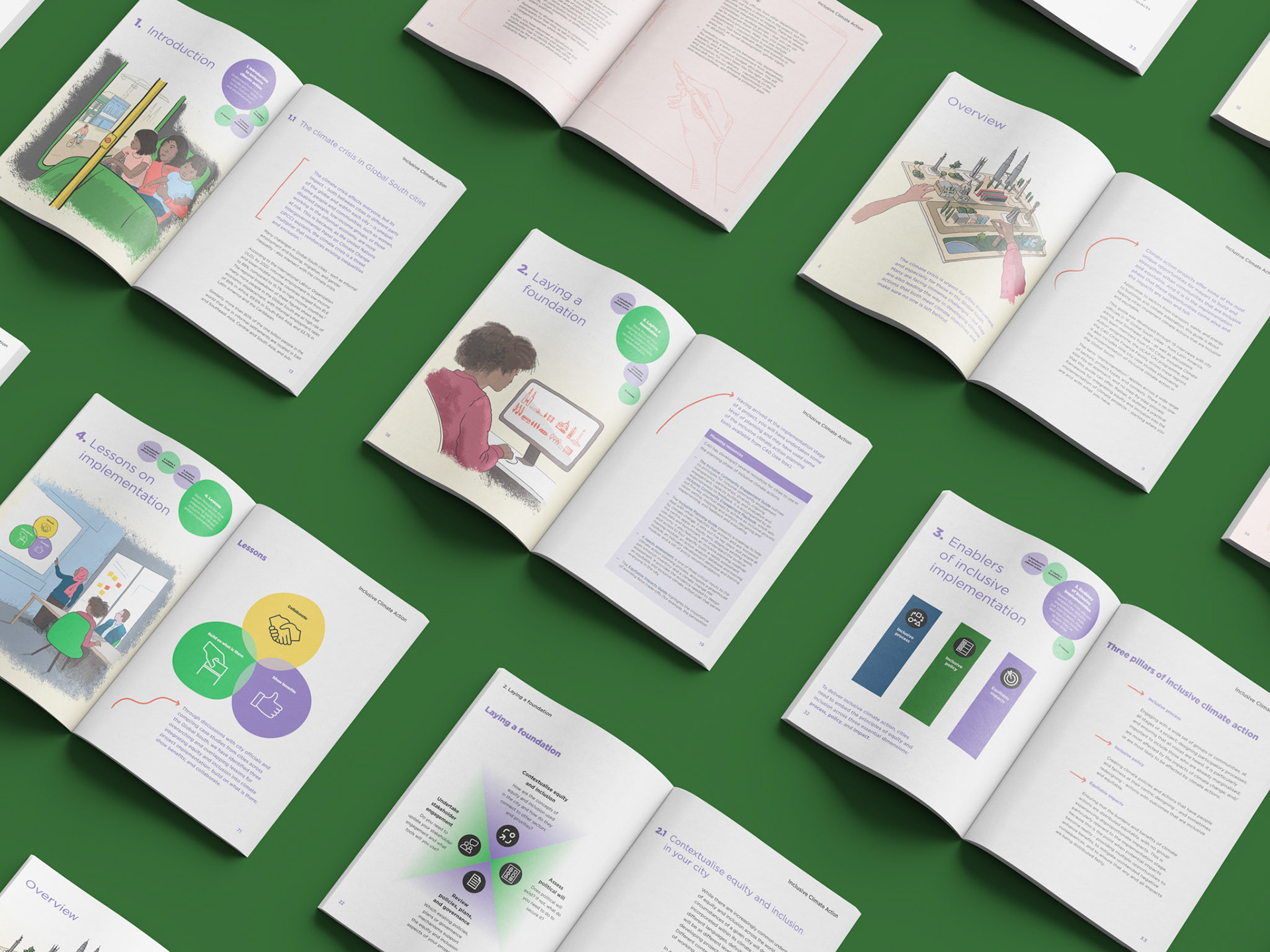 This 93-page Implementation Guide for C40’s Inclusive Climate Action team included the development of five full-page illustrations, alongside a series of background drawings.